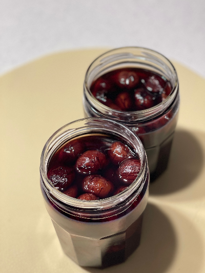 조린 밤을 열탕 소독한 병에 담고, 같이 졸인 시럽(계피스틱은 버리고)도 밤이 푹 잠길 정도로 넉넉히 넣어준다.